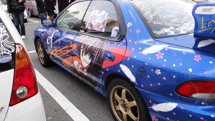 ちょっと用事あったので難波へ。午前中に用事すませて、さて…足はメロ○ブックスへ!(ぁ)minoriのefのイベントがあったので、ついでに行ってきた。行く途中、巷はなぜかオタク!オタク!オタク!いつもよりかなり人多くて、しかもコスプレしてる人がけっこういた。なんかイベントがあったみたい。日本橋の真実の姿を見た気がした。。。そして、ついに見てしまった。パーキングにずら~~っと、痛車が並んでいる姿を!ホンダのS2000、三菱のランエボ、BMWのZ3…世界に名だたる名車が、変わり果てた姿に!!ちなみに、自分の愛車の痛いのは…ありませんでした。しょぼーん…というかコスプレは駄目だなって実感した。99.8%の子(中の人)が可愛さの点で平均点いk…うわ、はなせなにをするー!2次元こそ理想郷(ユートピア)と再認識した。